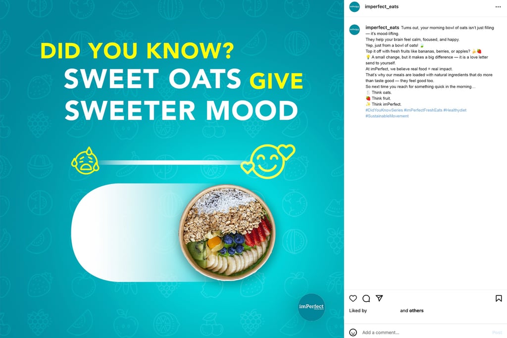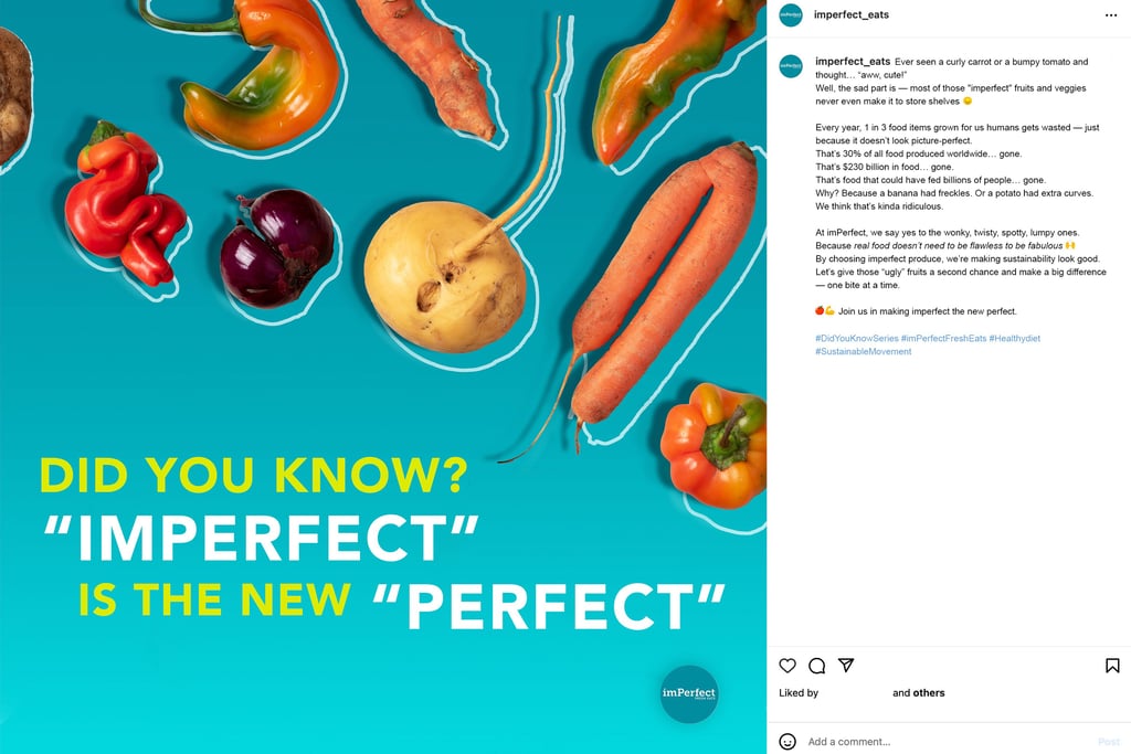 Key attribution: short caption while incorporating imPerfect’s logo and products in the post's images.