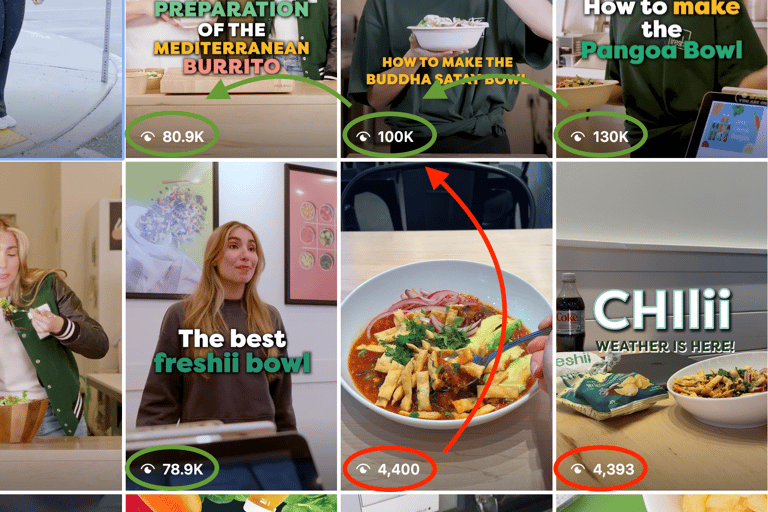 By analyzing competitor account, it shows short-form videos have a real person leading the content are more interactive and received more views and engagement than video without people. In healthy food space, this works well because audiences connect more friendly, relatable faces sharing tips or recipes.